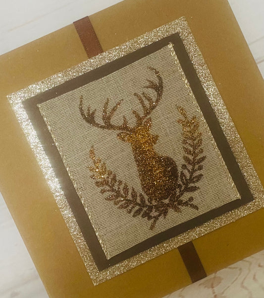 Bronze Glitter Stag Handmade Christmas Card
