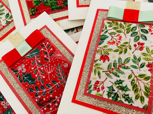 Floral Holly Christmas Handmade Card