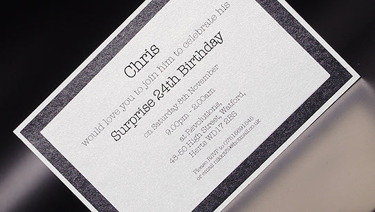 Classy black and white flat card invite, suitable for all ocassions - Birthdays of any ages, black tie, dinner parties, themed events or corporate outings.