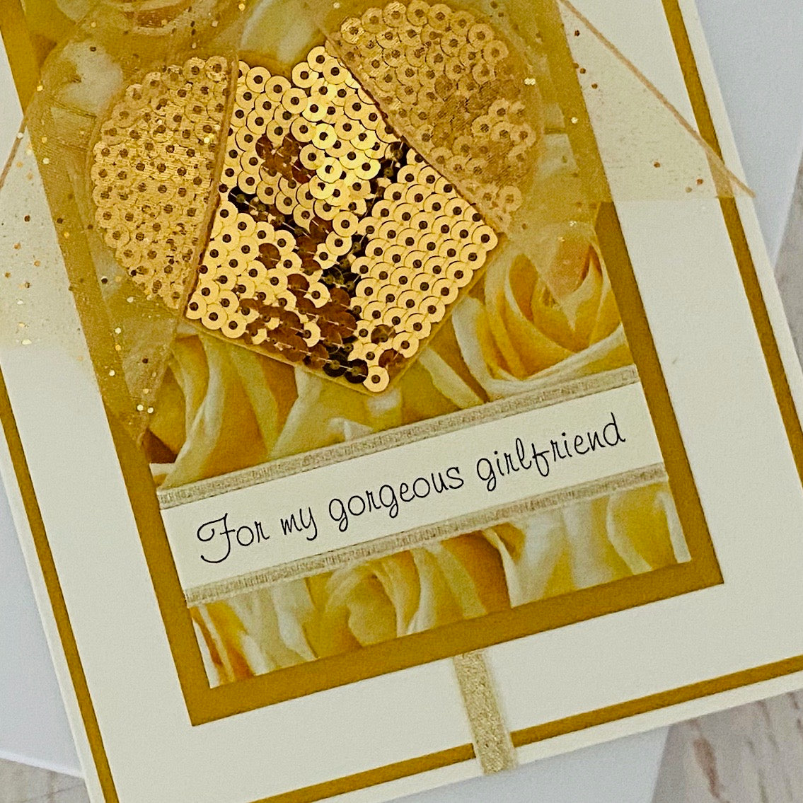 Gold Sequin Heart Handmade Card