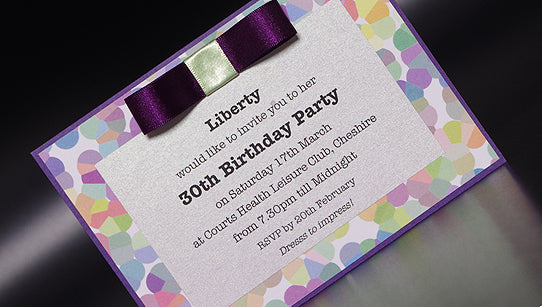 Sophistication and fun at the same time...Three layers of quality board and print professionally finished off with a hand tied purple and pistachio satin bow.